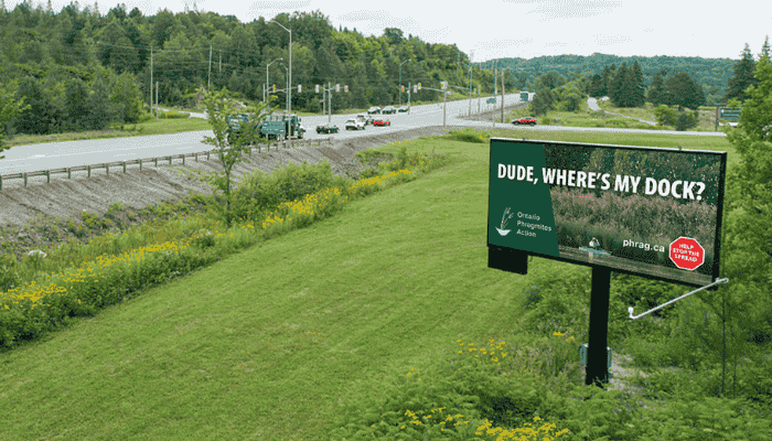 OPA recently launched a billboard campaign to raise awareness of invasive Phragmites and its impacts. This summer, billboards along highways 400, 11, and 60 will bring attention to the invasive plant that travelers will see on their journey and at the lakes they are visiting. By highlighting this “road trip ruiner,” the campaign aims to reach a wider audience beyond Phragmites managers by capturing the attention of lake enthusiasts and cottage-goers, and motivating them to learn more about Phragmites and do their part preventing its spread.